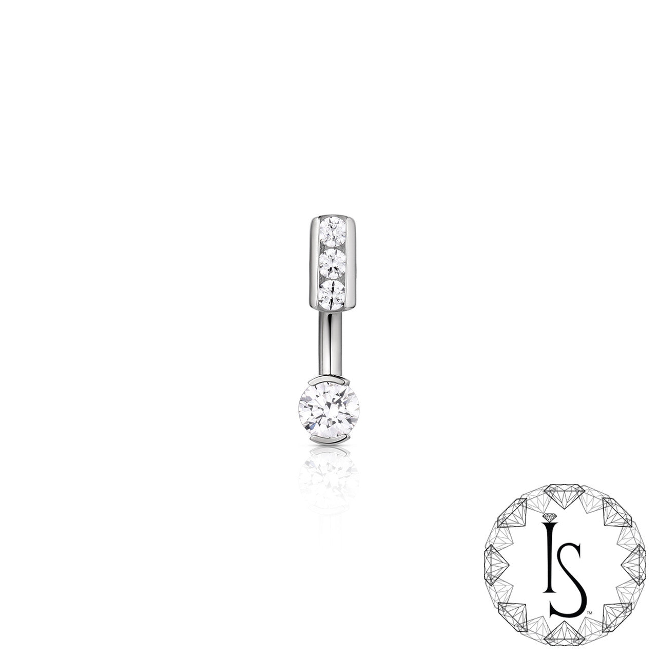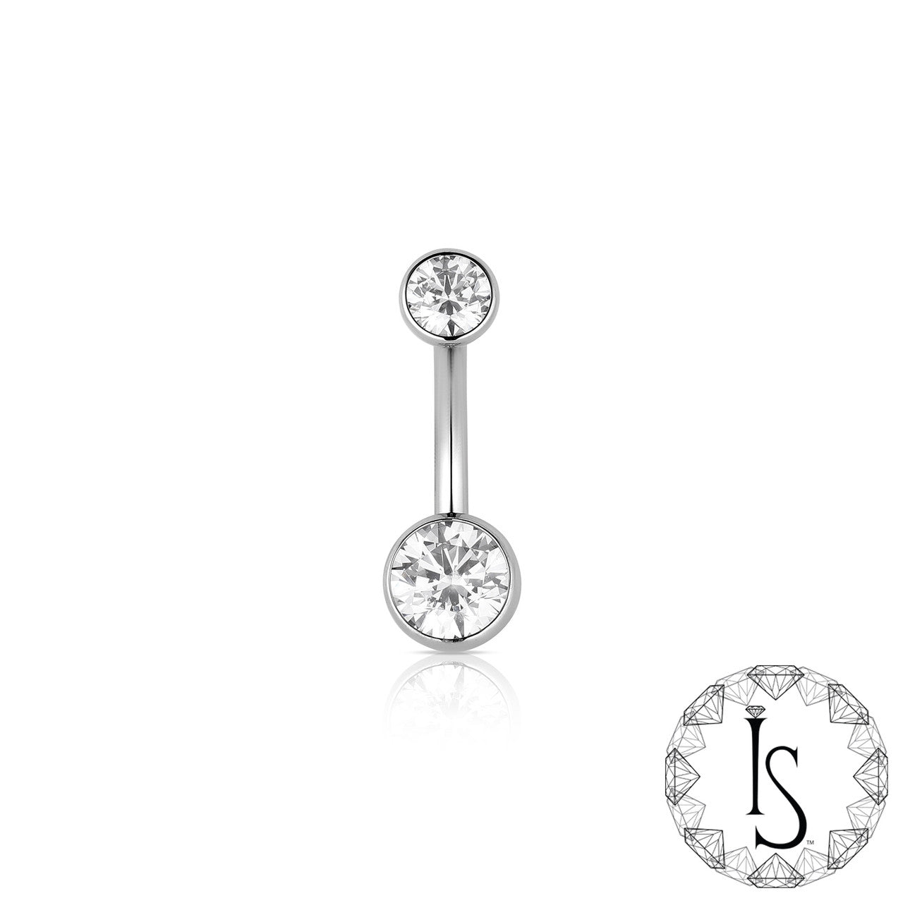 Curved Navel Barbell with 3 Prong Faceted Gems (4mm top and 6mm bottom)