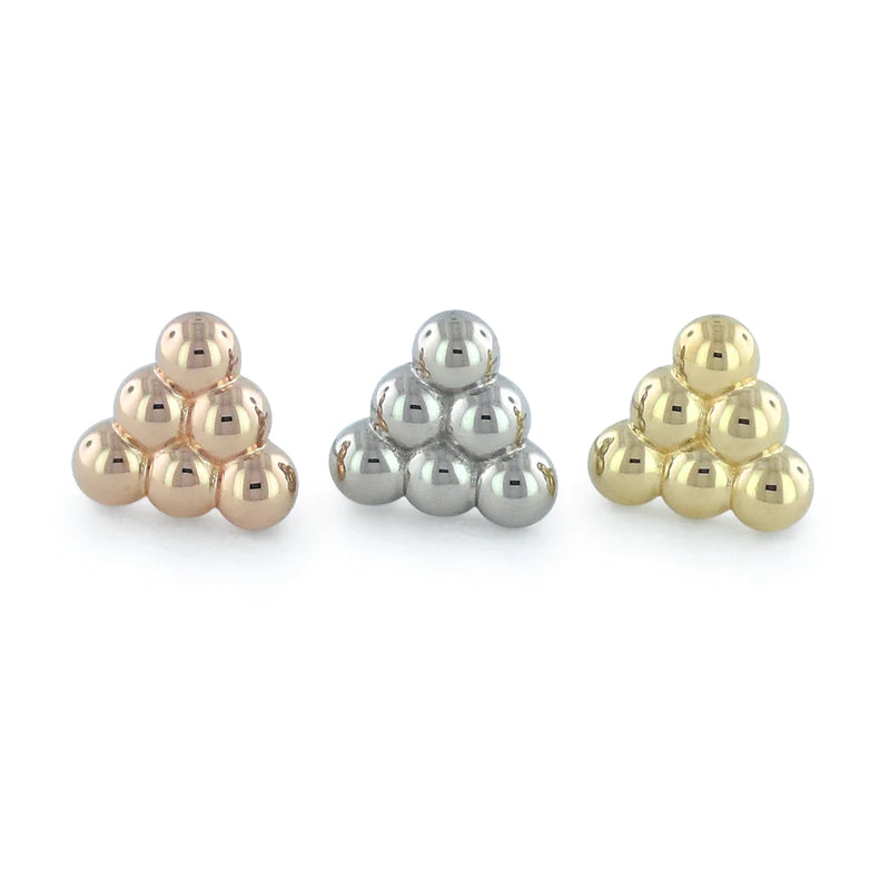 Bead Clusters! Take it a step up from the basic ball stud. Press fits onto any threadless post (sold seperately). All 18k, choose from yellow, rose, or white gold. Available in clusters of 3, 4 or 6 beads.